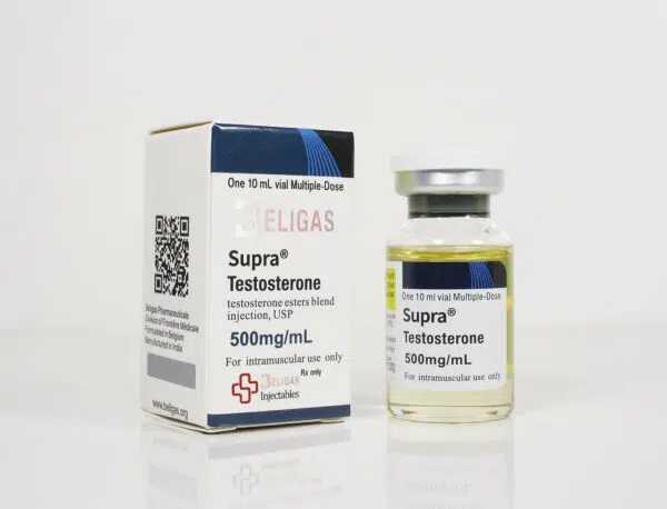 Supra-Testosterone 500mg/ml combines four androgenic anabolic testosterone esters (AAS): 30 mg propionate, 120 mg phenylpropionate, 120 mg isocaproate, and 100 mg testosterone decanoate.